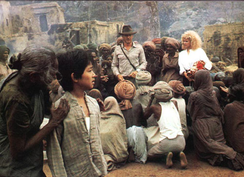 Al final llegan a una aldea donde solo hay desolación pues todos los niños han desaparecido, la pareja es acompañada por un niño, que es la “mano derecha de Indi”. En este lugar, se enteran de que todos los niños de la aldea han sido secuestrados por una secta de adoradores de la diosa Kali. Su líder Mola Ram es el principal responsable de la desaparición de los niños y de la roca Shancara que los hace invencibles.